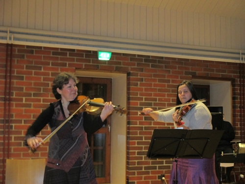 Sofia Lindroos och Anna Eriksson uppträder med violin