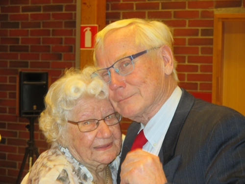 Åretspensionär i Esbo - Astrid Holm, 100 år, dansar kind mot kind med Ulf Johansson